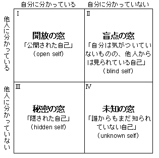 ジョハリの窓とは、自分をどのように公開し、隠蔽するか、コミュニケーションにおける自己の公開とコミュニケーションの円滑な勧め方を考えるために提案されたモデル。 ... -