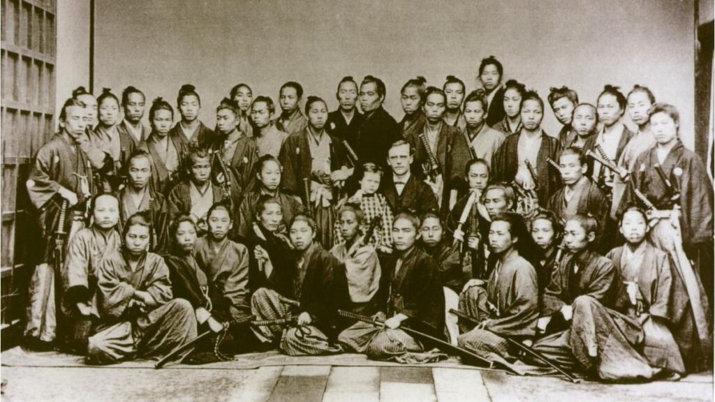 江戸時代末期に撮影されたものであろう。写真は明治天皇を中心に明治維新に貢献した人々の集合写真。勝海舟、江藤新平、井上肇、伊藤博文、小松帯刀、大久保利通、西... -