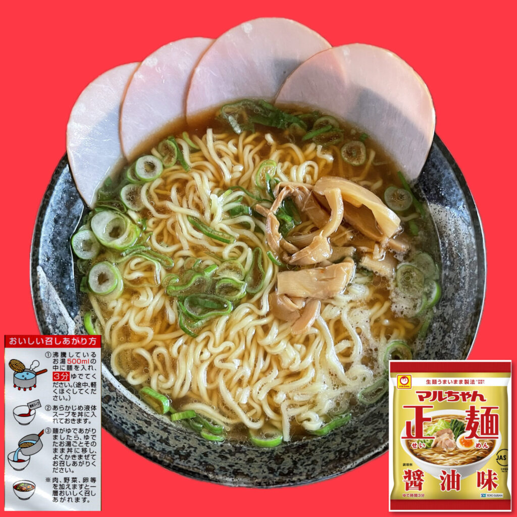 昼食はマルちゃん正麺(醤油味)×2袋。チャーシューが無かったのでハムで代用。袋裏面の「おいしい召し上がり方」の通りに作ったが、お湯500mlは麺1玉の時だ。液体ス... -