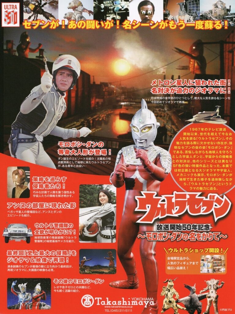 昨日、仕事で横浜高島屋に行った妻が、おみやげを買ってきてくれた。それは、同百貨店で開催中の「ウルトラセブン放送開始50年記念〜モロボシ・ダンの名をかりて〜」で販売されている、ウルトラセブン公式ブック、ウルトラセブン特別号(スポーツ報知・両面刷り32ページ)、ウルトラセブンTシャツだった。