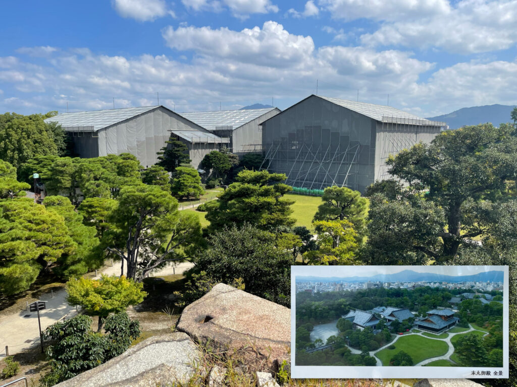 さて、二条城に着くと、只今 “世界遺産・本格修復事業” 中で、本丸御殿を観覧することができなかった。わたしが、