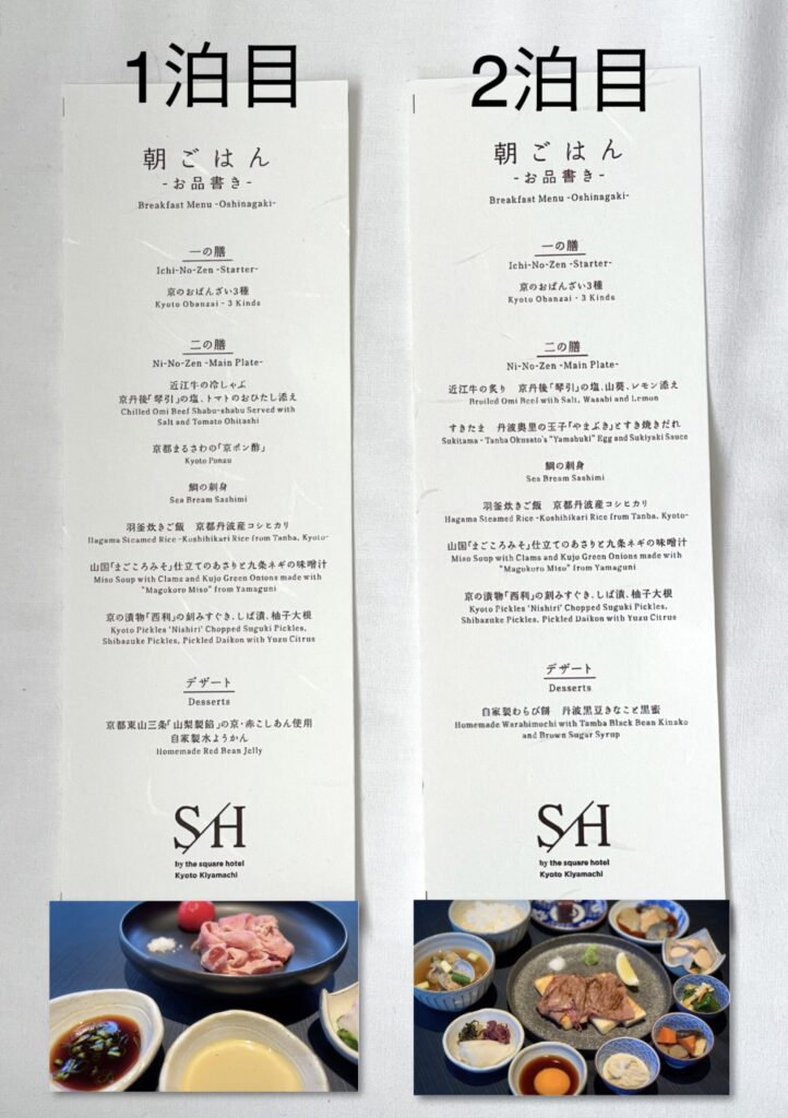 2泊目朝食の近江牛の炙りは、まず京丹後「琴引」の塩、山葵でいただき、すき焼きだれには添えられたレモンの汁をかけていただいた。すき焼きだれには丹波奥里の玉子「やまぶき」の黄身だけが乗せられていて、ねっとりとした濃厚な黄身と甘口のすき焼きだれに絡みつく近江牛の炙り、思い出すだけで生唾が湧いてくる。うまい!