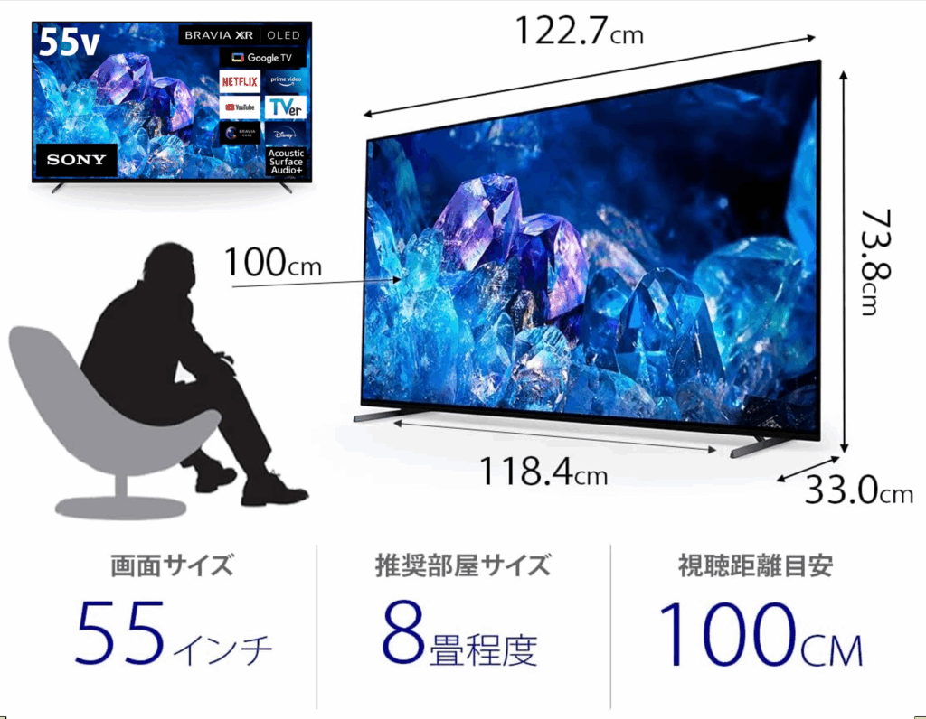 ところが、先月家電量販店でテレビ売り場を覗いたら、1台だけ2022年発売のSONY製55インチ有機EL 4Kテレビが定価の54%OFFで売り出されていたのだ。