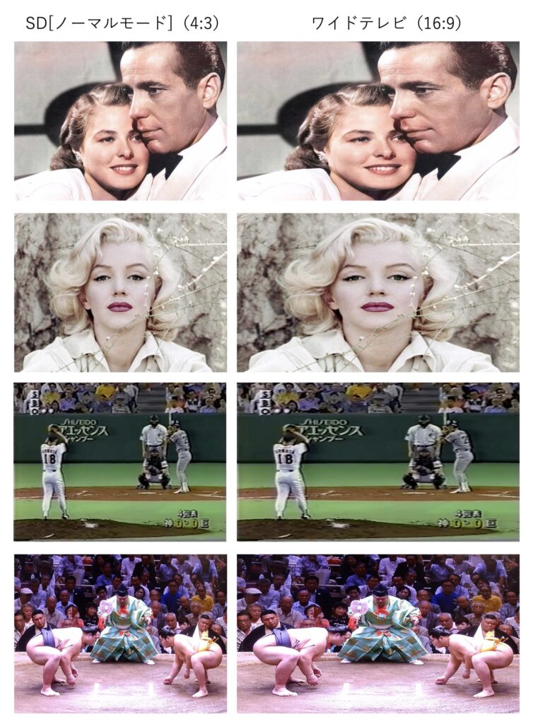 ところで、ワイドテレビってなんだったんだ? スタンダードの映像を単に横に広げただけだったので間延びした映像になり、ハンフリー・ボガートもイングリッド・バーグマンもマリリン・モンローも台無しじゃないか。横に広がることでスポーツは迫力が増したかもしれないけど茶番だったね。