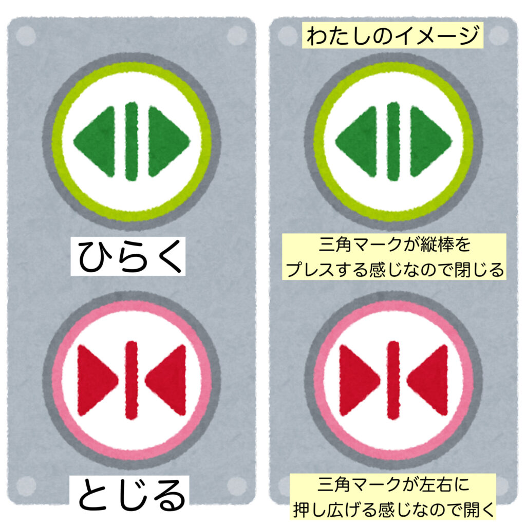 ただ、エレベーターには、【◀︎|▶︎】【▶︎|◀︎】ボタンの下に「開く/閉じる」「ひらく/とじる or しめる」と、プリントされていることもあるので、わたしと同じ間違えをする人もいるのだろう。
