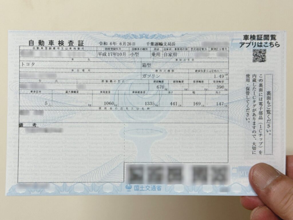 自家用車の名義を義父からわたしへ変更するため関東運輸局千葉運輸支局へ行ってきた。そして、手続きを済ませて渡されたのが写真の車検証だ。