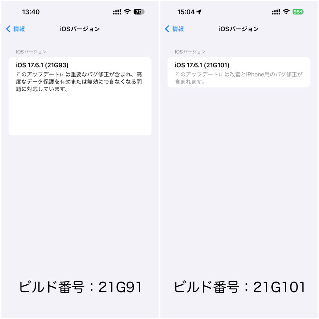 8月8日にリリースされた、iOS 17.6.1 が19日に同バージョン番号でビルド番号を更新して再リリースされた。