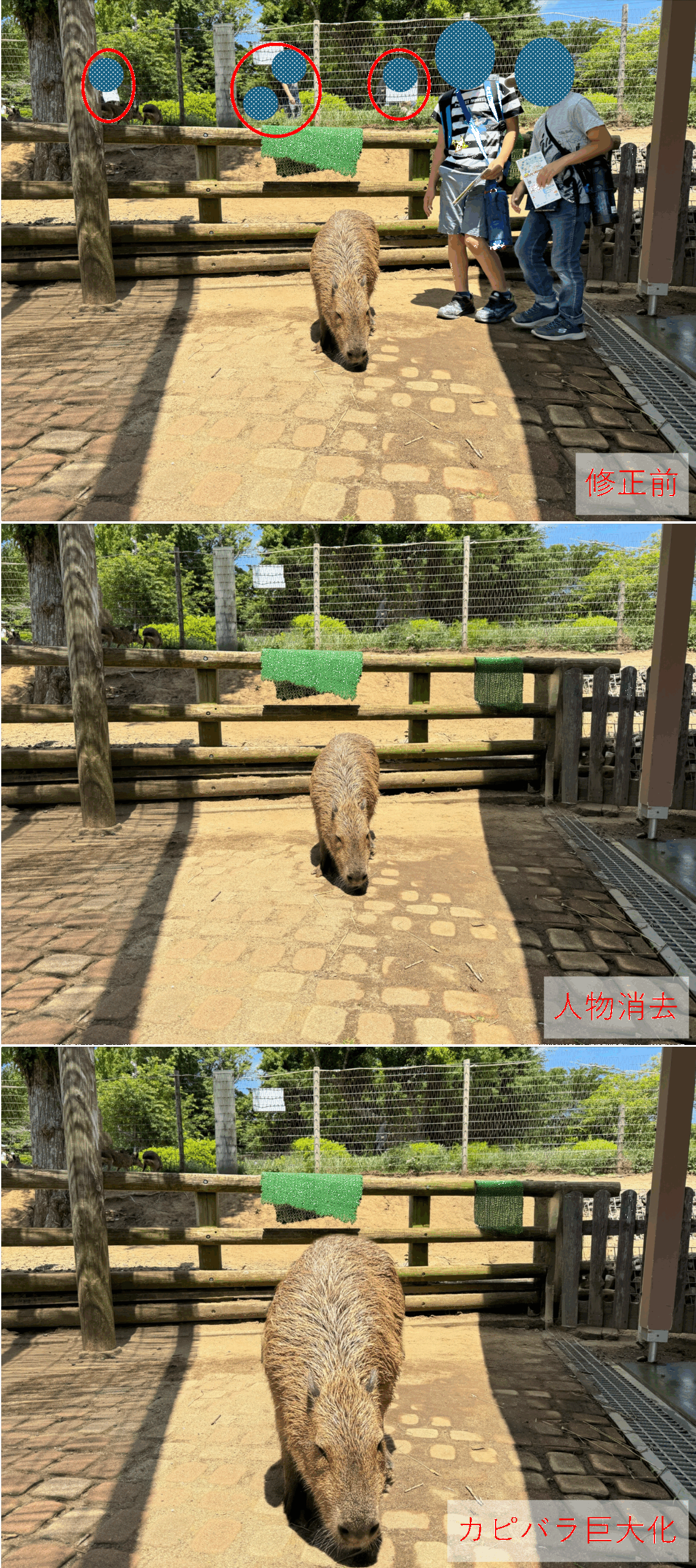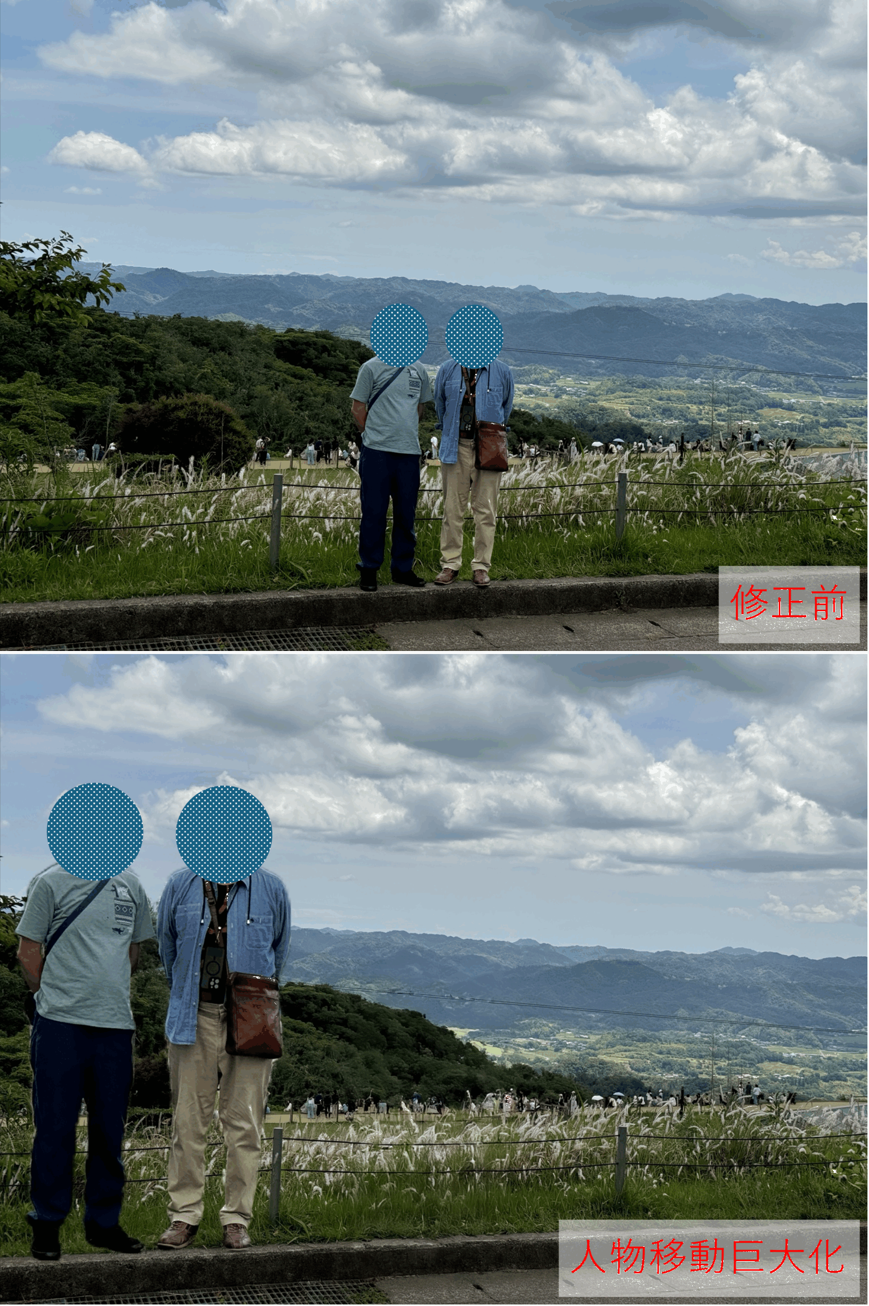 早速、Googleフォトから写真を選んで、消しゴムマジックを使ってみた。すごい、不思議だ、何て芸だ。AI機能で人物を認識したり、対象物の移動・拡大縮小もできたり、見えない箇所もまるで見えていたかのようにそれなりに補正しちまう。