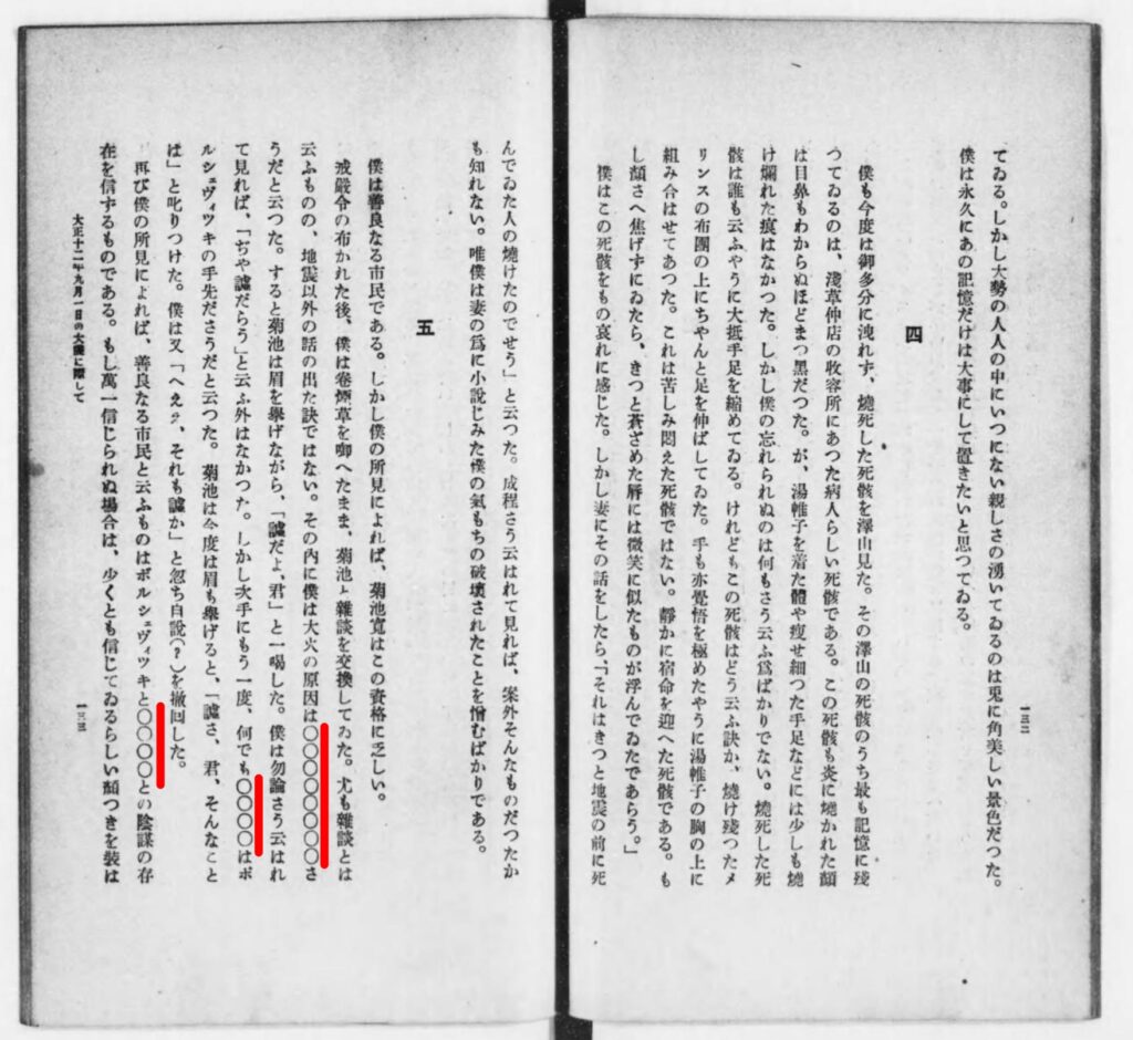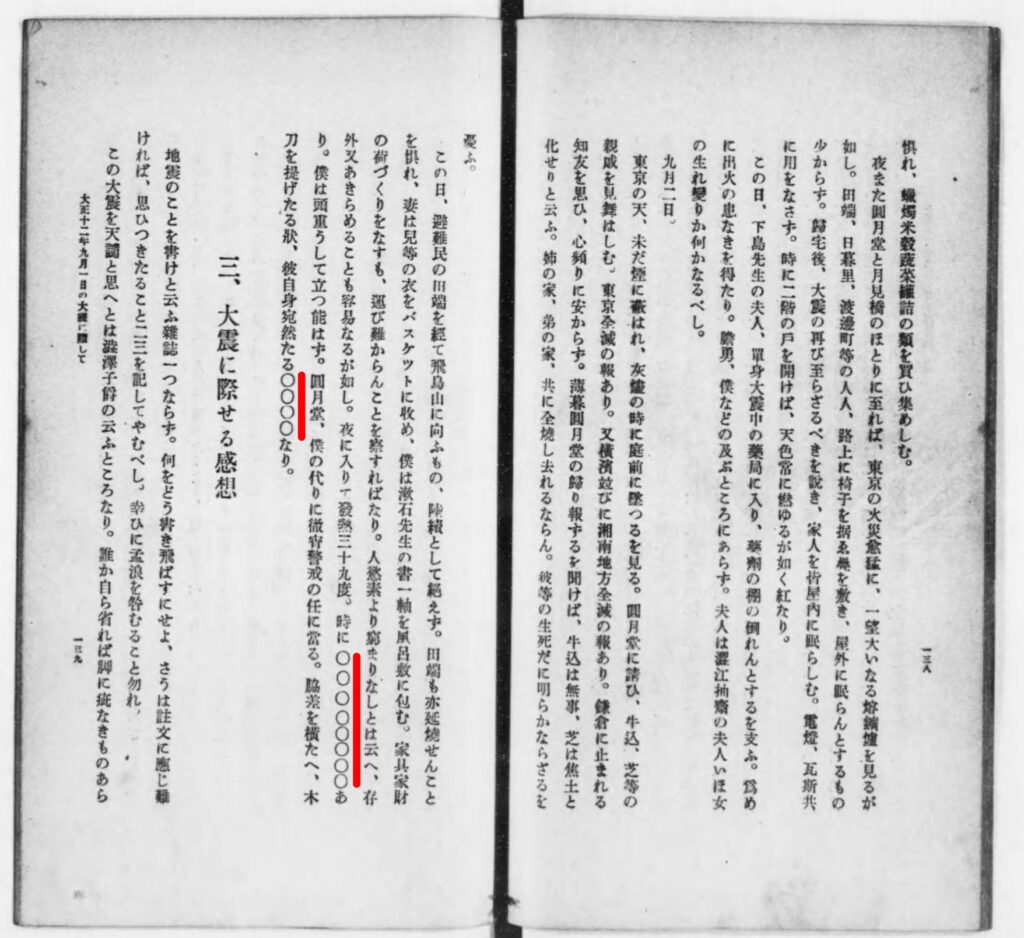 手記「大正十二年九月一日の大震に際して」の伏せ字箇所