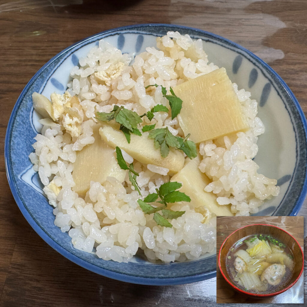 タケノコは、晩の酒の肴として天ぷらと若竹煮に。うまい! シメはたけのこご飯だ。うまい! 妻も友人のおかげでタケノコ食べられたとご満悦。ごちそうさまでした。