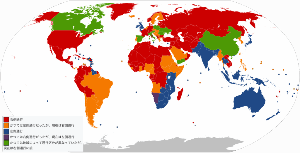 ほとんどの国と地域が右側通行を採用している。海外で運転することを考えると右側通行の方がいいのかな。