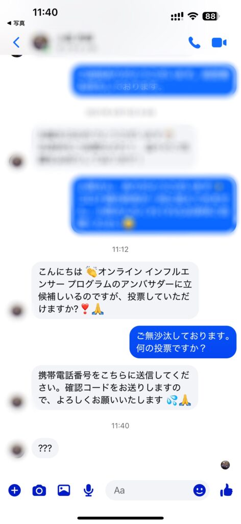 送り主はわたしが仕事でお世話になったスキルの高い技術者だ。Facebookでは繋がっているが、リアルでお会いしたのはもう何年も前になる。そんな人からメッセージがきたのだが、あれ?絵文字使っている。ちょっと怪しいなぁと思ったが、