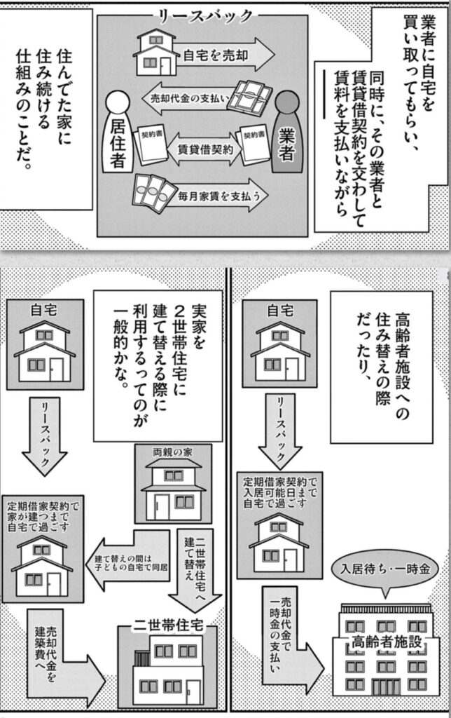 自宅を売却して現金を得た上で、引き続き同じ家に住み続けることができる不動産取引のこと。