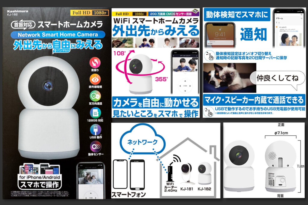 妻とホームセンターへ買い物に行ったついでに、外出時に自宅でお留守番をしている愛猫斑の様子を確認するために、スマートホームカメラ(Kashimura KJ-182)、通称ペットカメラも購入した。