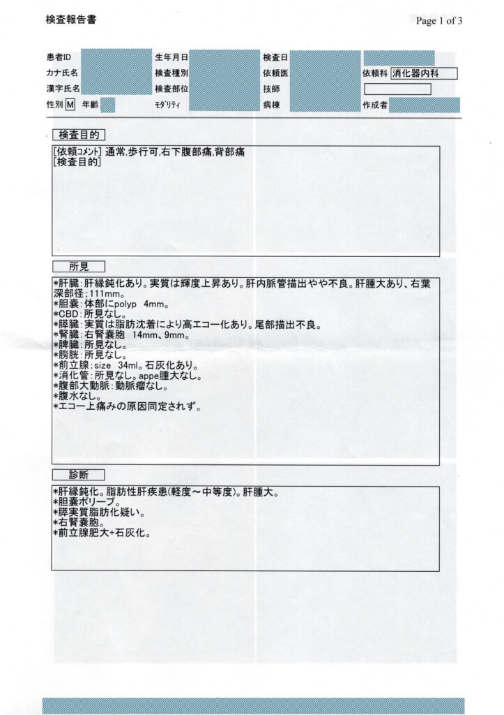 エコー検査の『検査報告書』では、この歳になるといろいろと要注意はあるものの、今すぐにどうこうしなければならない大きな障碍はないと診断され、薬も処方されることはなかった。
